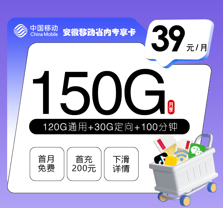 39元月包20G通用+250G省内通用+200分钟通话+会员权益